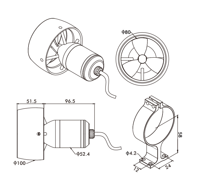 | Material of the nozzle | POM | Applications | Unmanned surface vehicle, Electric surfboard,ROV,etc. |