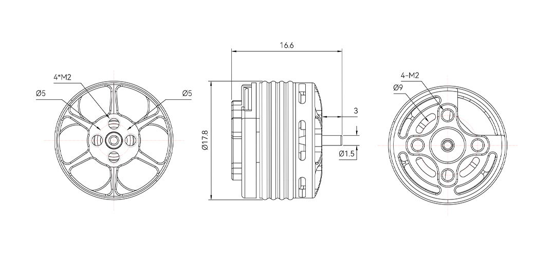 | Screw Diameter | Φ9-M2-4 | Prop Adapter Shaft Thread | Φ5-M2-4 |