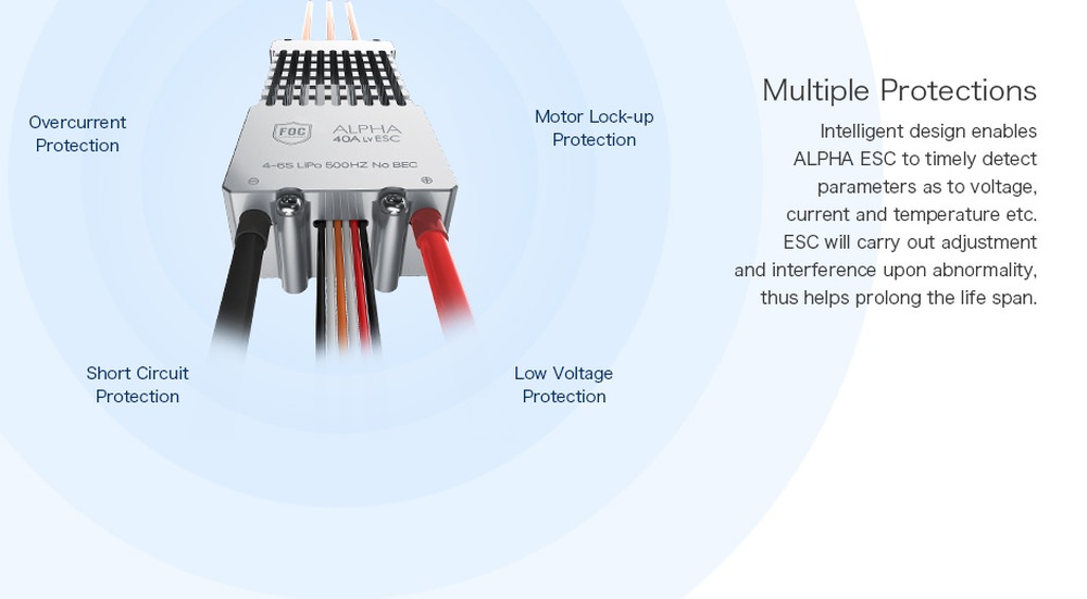 Der Regler ist ausschließlich mit T-Motor Motoren kompatibel (Sie finden weiter unten im Angebot eine Liste mit kompatiblen Motoren) und für jeden Motor ist zur optimalen Nutzung eine eigene Firmware vorhanden welche genutzt werden muss.