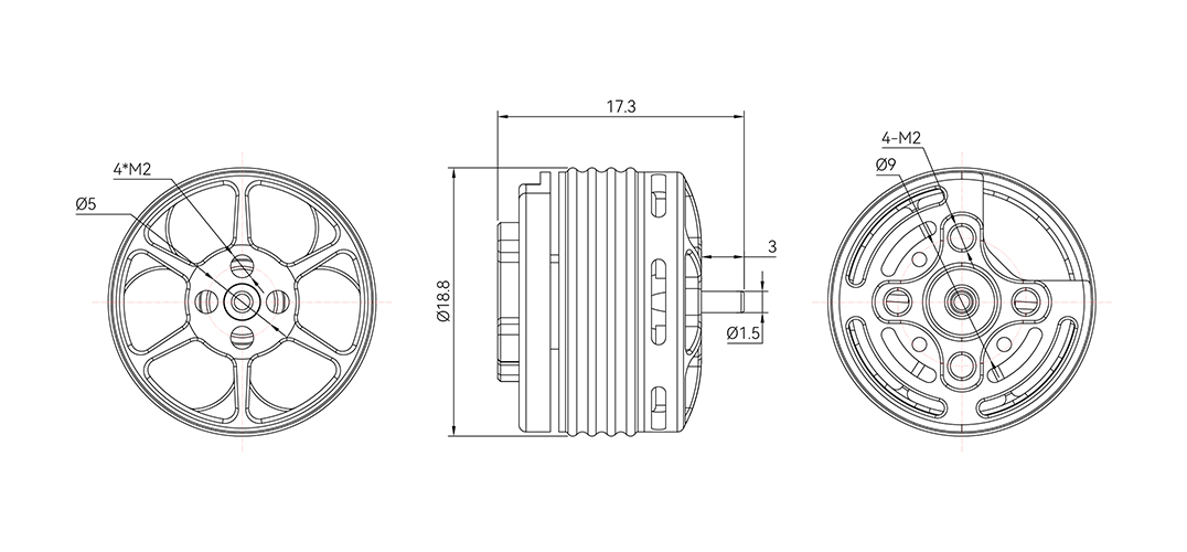| Screw Diameter | Φ9-M2-4 | Prop Adapter Shaft Thread | Φ5-M2-4 |