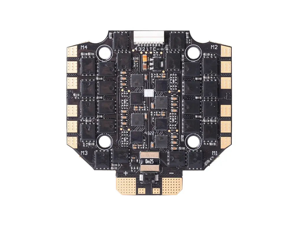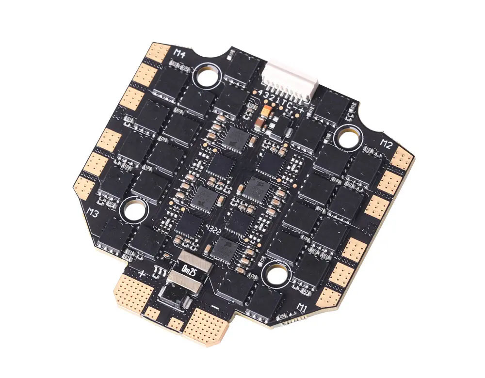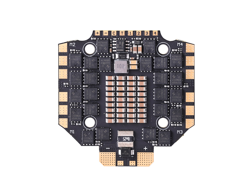 The C80A 4IN1 ESC is suitable for the FPV cinelifter. Dual groups of MOSFETs are connected in parallel to reduce heat generation and improve stability.