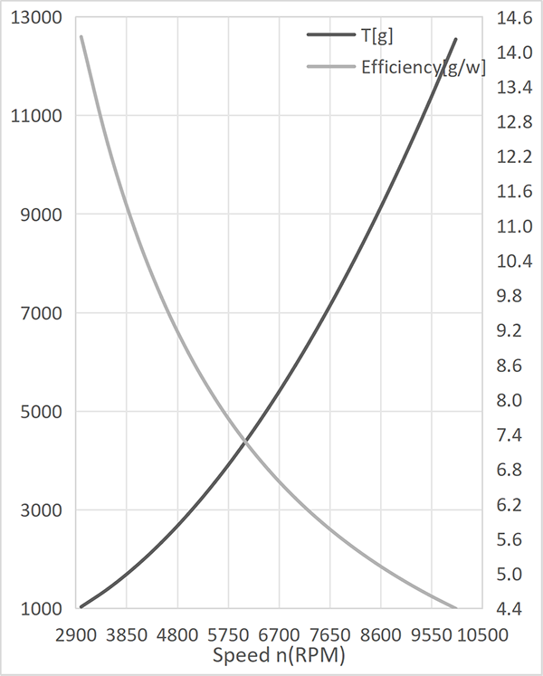 | Ambient Temperature22 °C Altitude25 m | RPM (RPM) | Torque (N·m) | RecommendedThrust (gf) | Output Power (W) | 力Effciency (gf/W) | |||